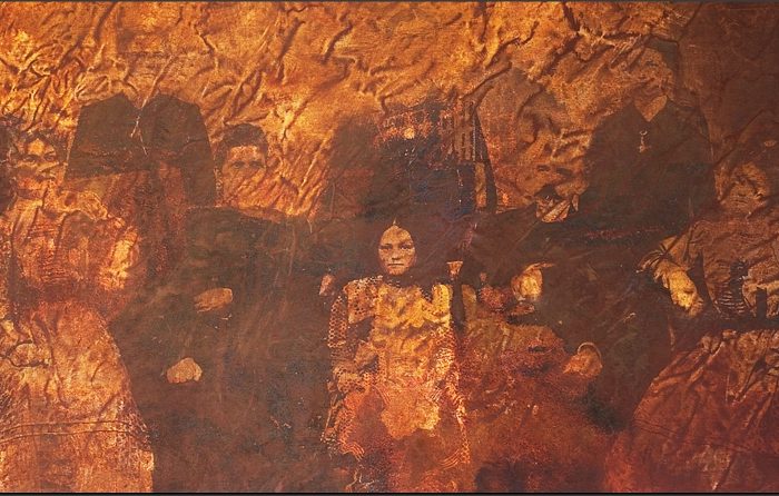 Bernardete CONTE (Caxias do Sul, Brasil, 1948) Família, 2009 Fotografia digital sobre tela, palha de aço oxidada com vinagre, tela amassada e veladura, tinta acrílica, 120 x 90 cm Coleção Paulo BassanesiLúcia, 2009