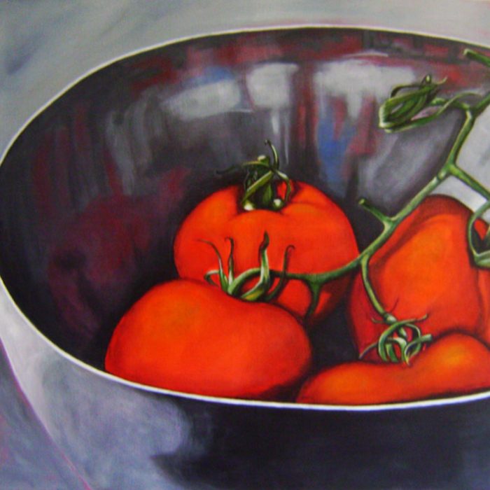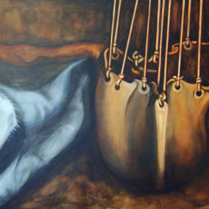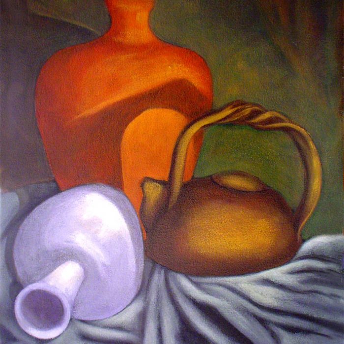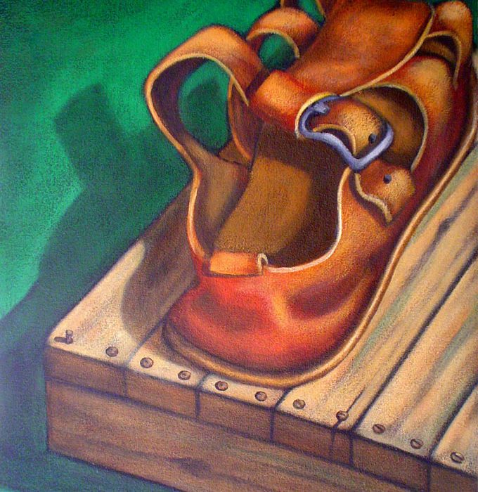 Bernardete CONTE (Caxias do Sul, Brasil, 1948) Tamancos de madeira, 2005 Acrílica sobre tela, 40 x 50 cm Coleção da artistaNatureza morta com lamparina de acetileno, 2005