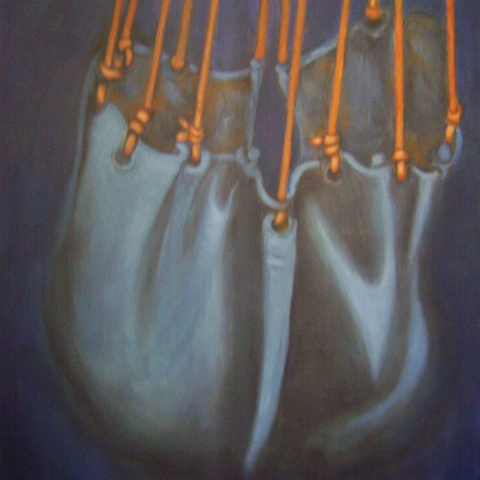 Bernardete Conte (Caxias do Sul, Brasil, 1948) Minha morada da série O que escondemos sob as unhas?, 2008 Plotagem e tinta acrílica sobre tela, 100 x 100 cm Coleção da artistaPara onde foram todos, meus amados? da série O que escondemos sob as unhas?, 2008