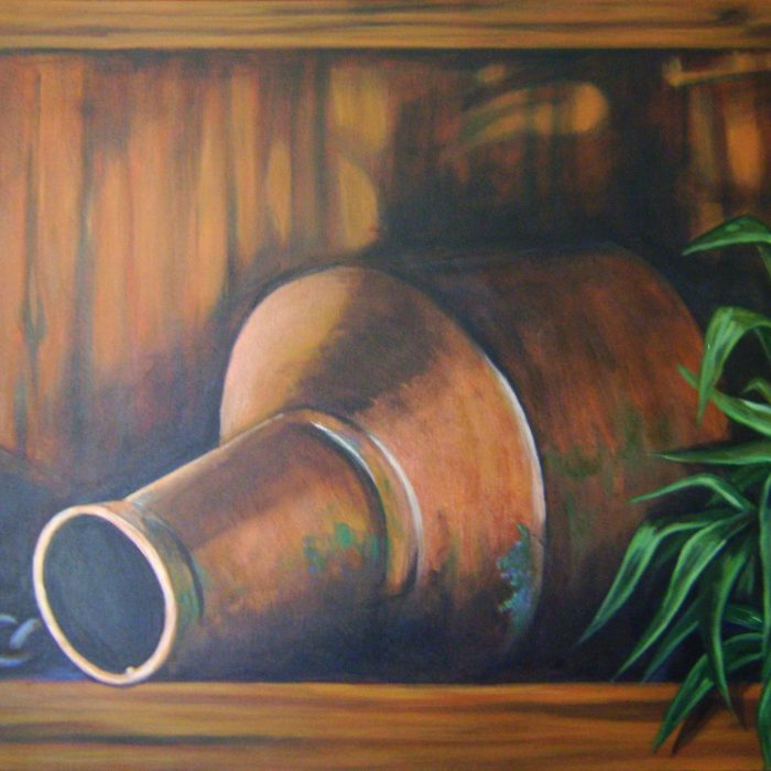 Bernardete CONTE (Caxias do Sul, Brasil, 1948) Natureza morta com lamparina de acetileno, 2005 Acrílica sobre tela, 40 x 50 cm Coleção da artistaMadeira V, 2006