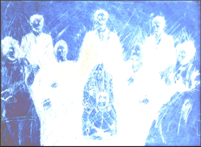 Bernardete CONTE (Caxias do Sul, Brasil, 1948) Na névoa da memória II, da série O que escondemos sob as unhas?, 2008 Fotografia digital sobre tela, palha de aço oxidada com vinagre, tela amassada e veladura seca com tinta acrílica, 30 x 1...Família em Santandrá, da série O que escondemos sob as unhas?, 2008