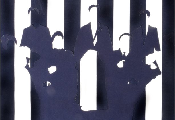 Bernardete CONTE (Caxias do Sul, Brasil, 1948) Ausência V, 2007 Recorte das personagens laterais superiores, substituídas por papel preto e papel de seda, 30 x 42 cm Coleção da artistaAusência IV, 2007